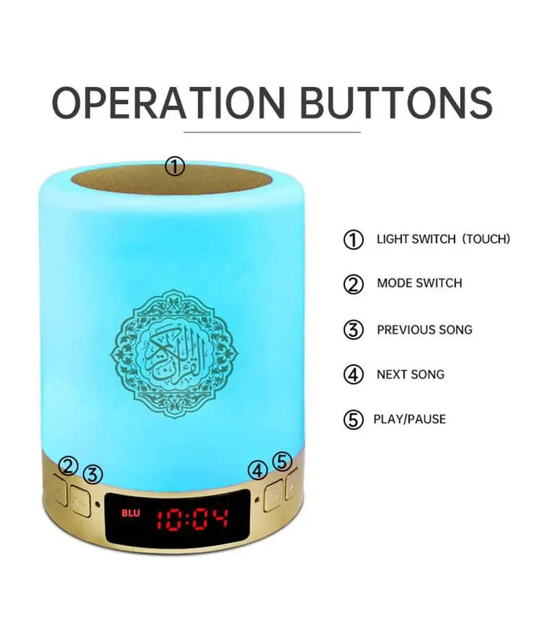 Portable Quran Speaker LED Touch Lamp with Azan Clock