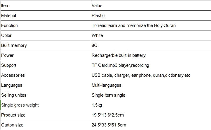 ✅ 8GB Memory - Stores multiple Qari recitations and translations